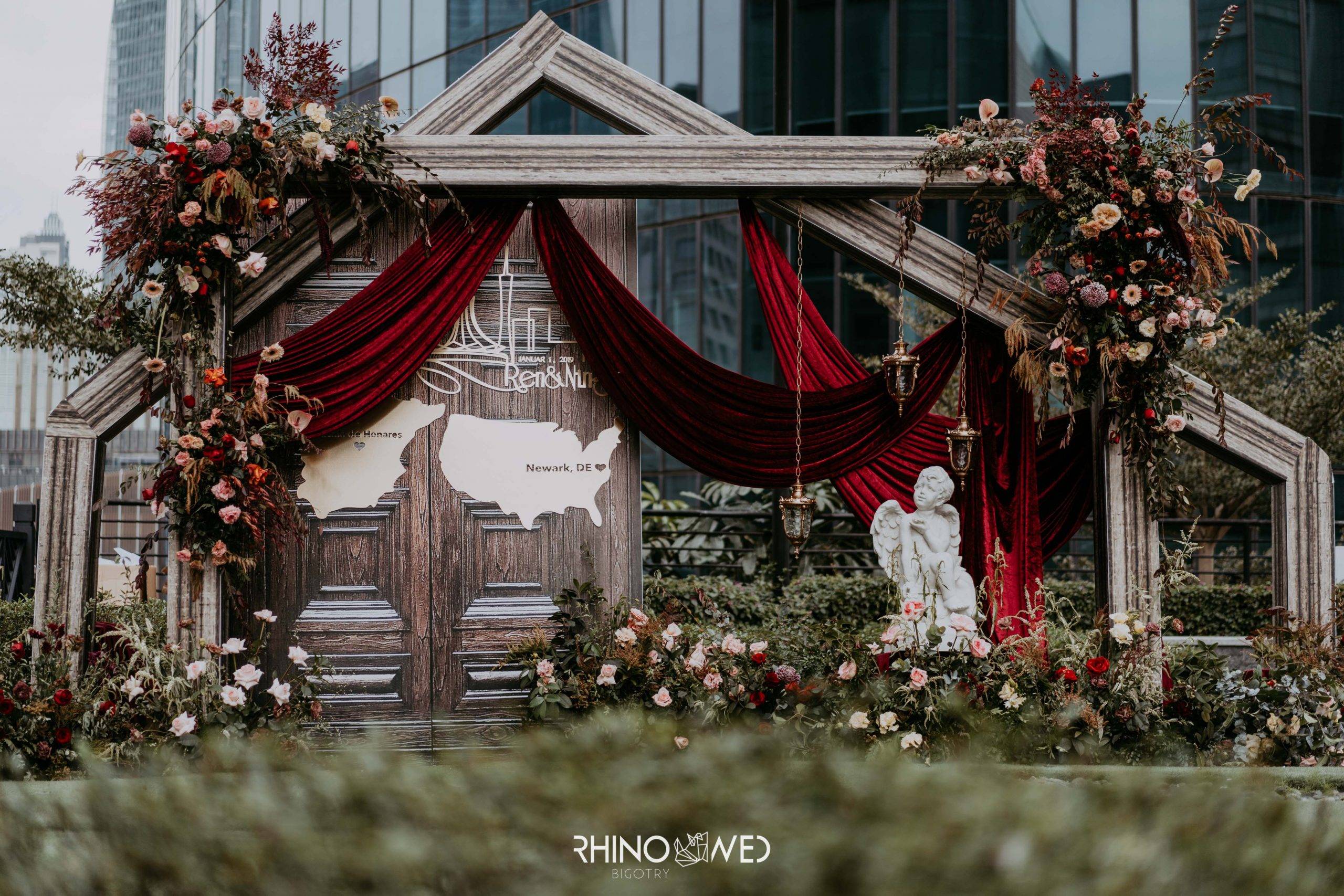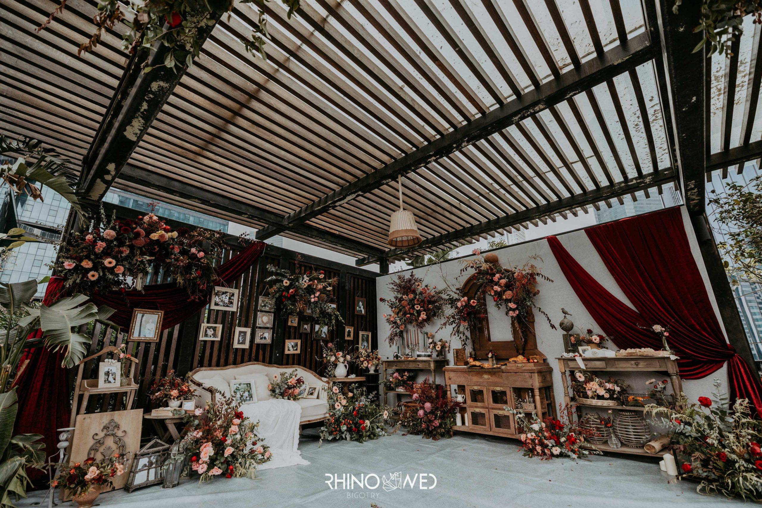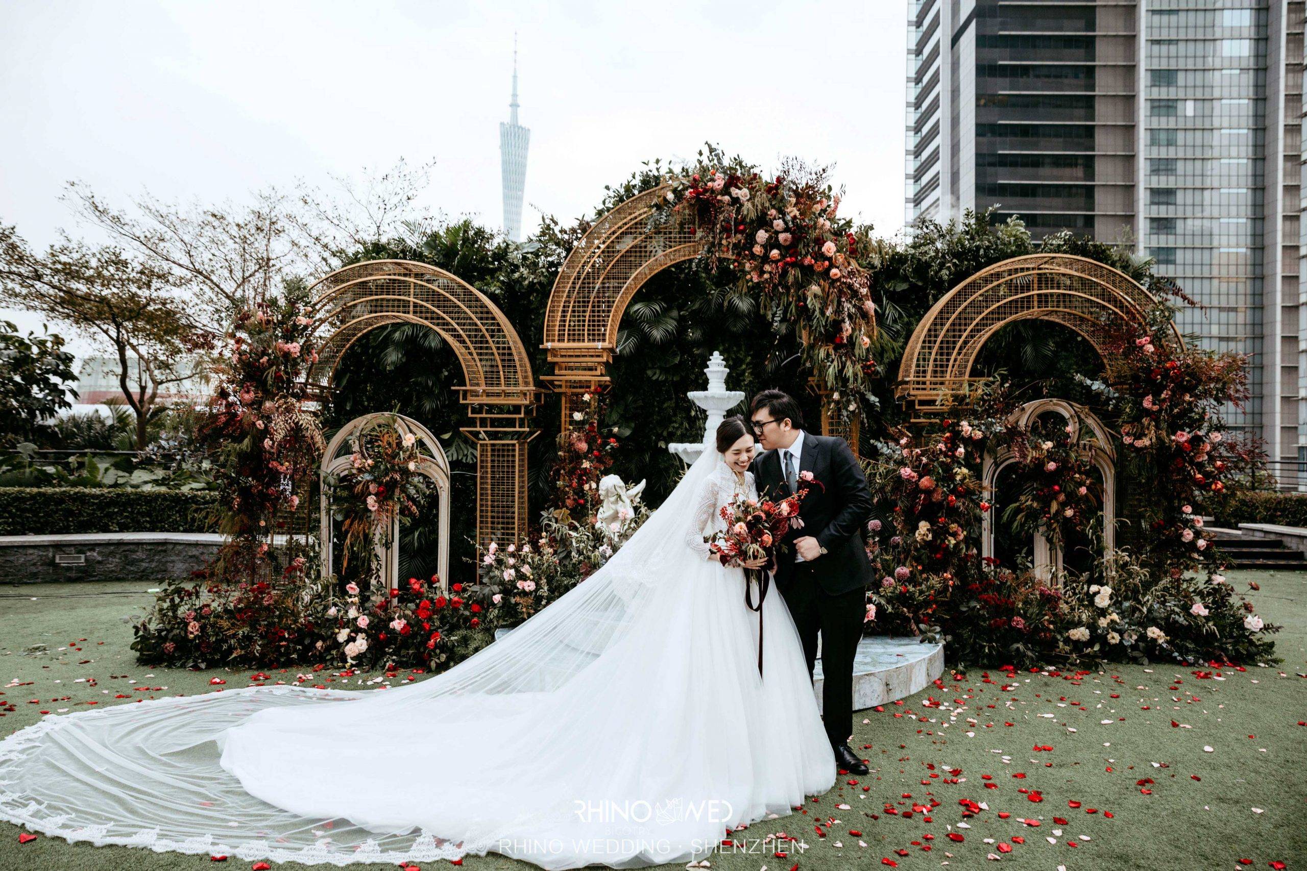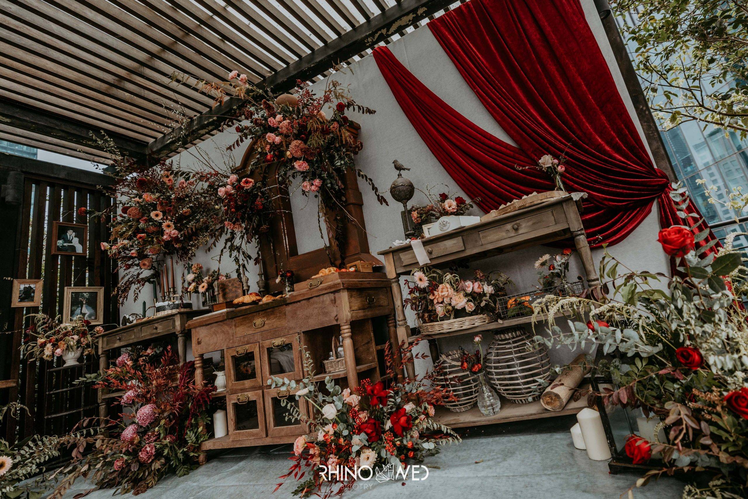 这场婚礼是新年第一天,1月1日,昨夜广州塔上亮起新年的庆祝灯光,这一天一早迎来了冰凉的天气,复古的酒红色生气勃勃的等待着新人宾客的到来;