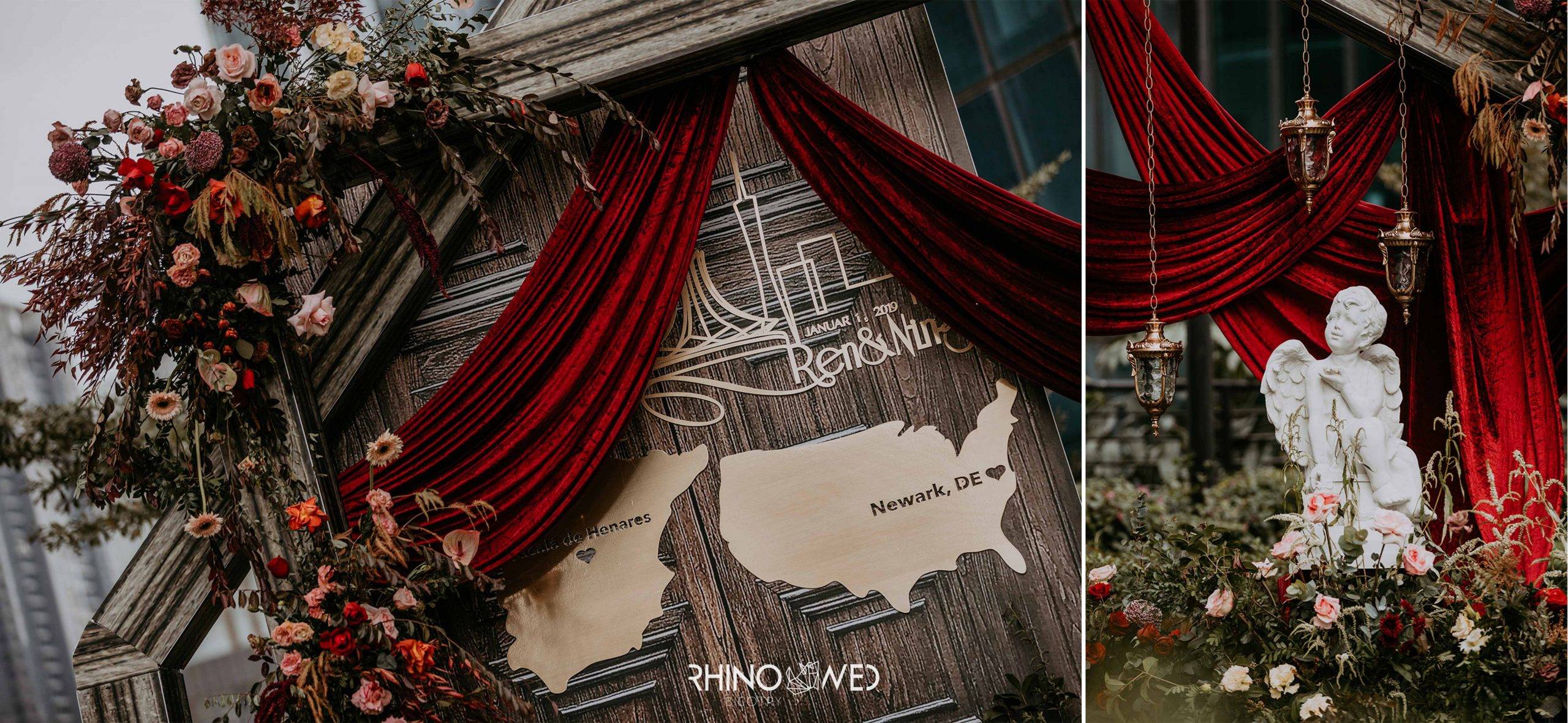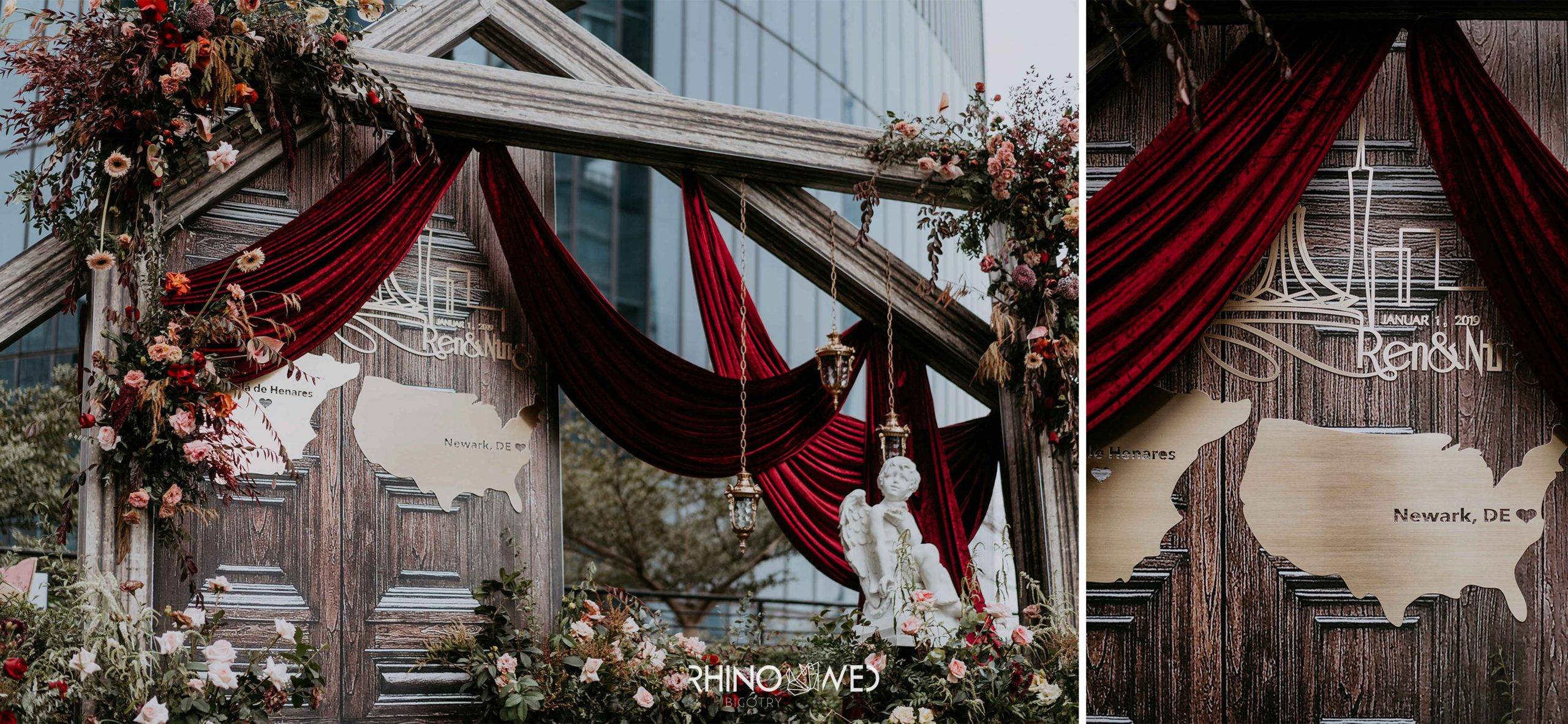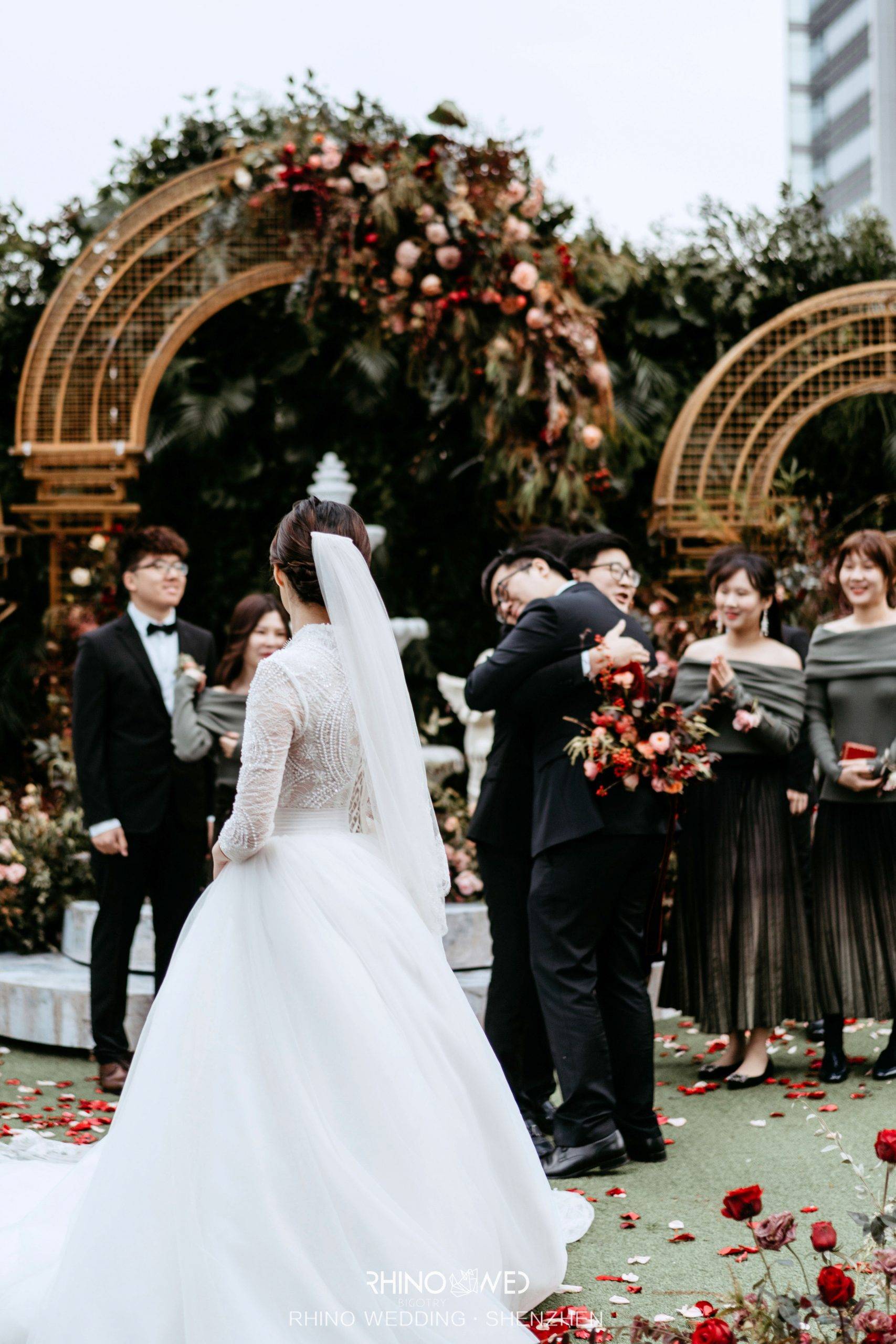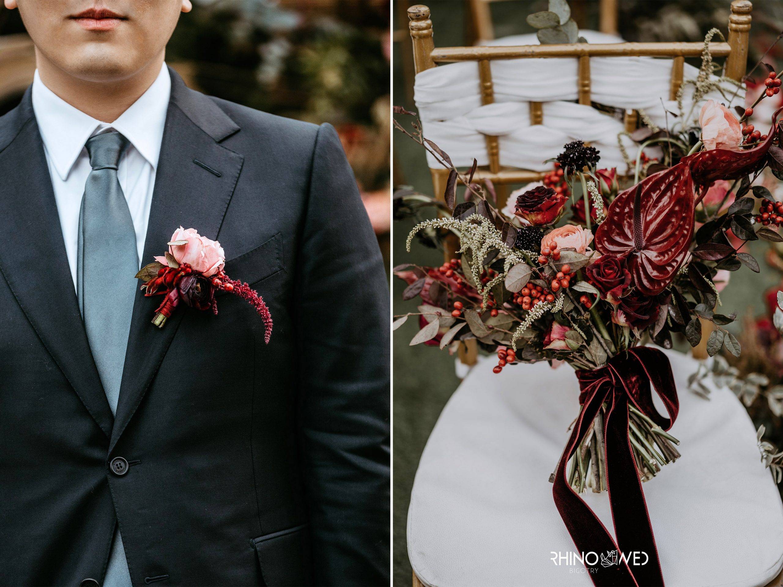 这场婚礼是新年第一天,1月1日,昨夜广州塔上亮起新年的庆祝灯光,这一天一早迎来了冰凉的天气,复古的酒红色生气勃勃的等待着新人宾客的到来;