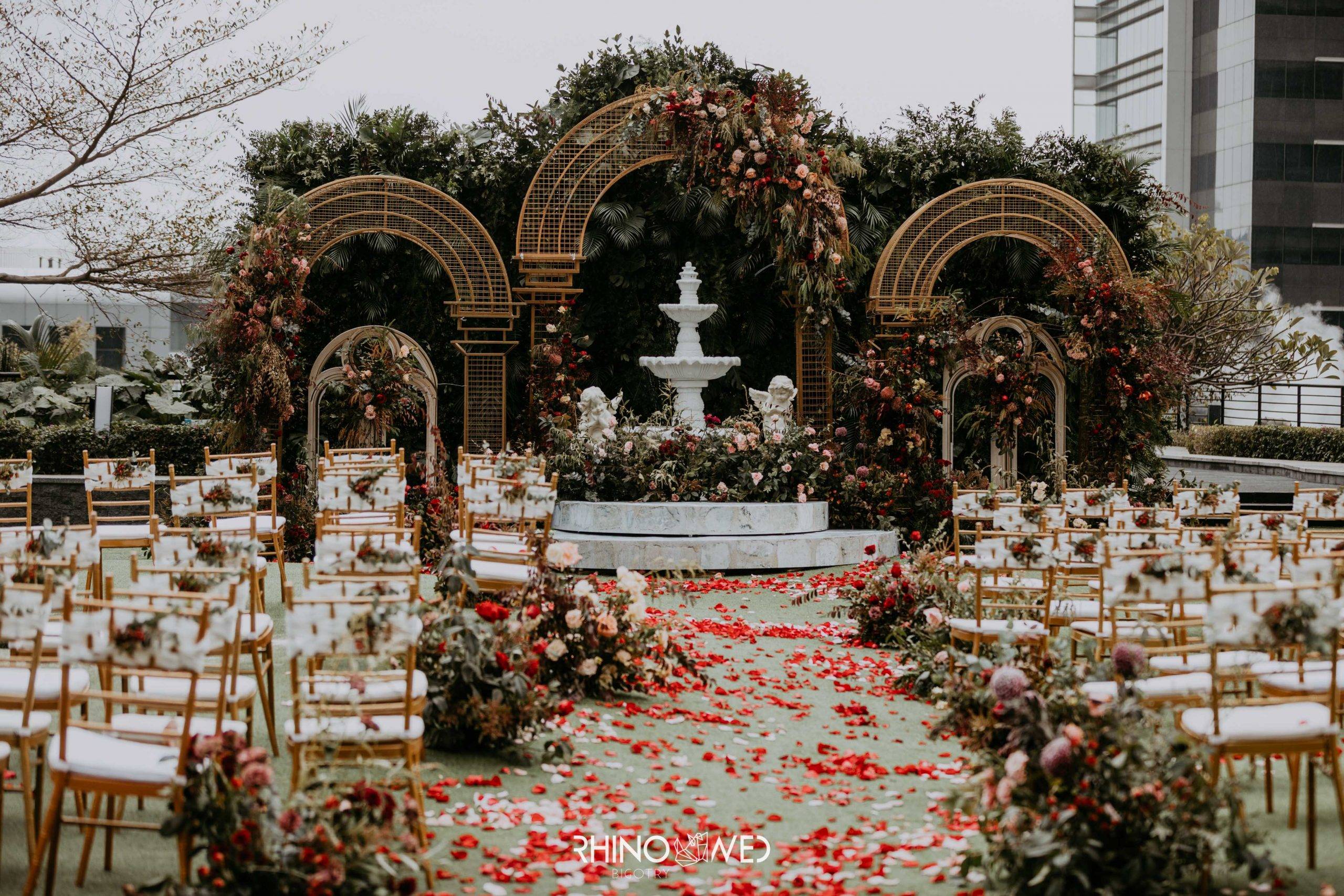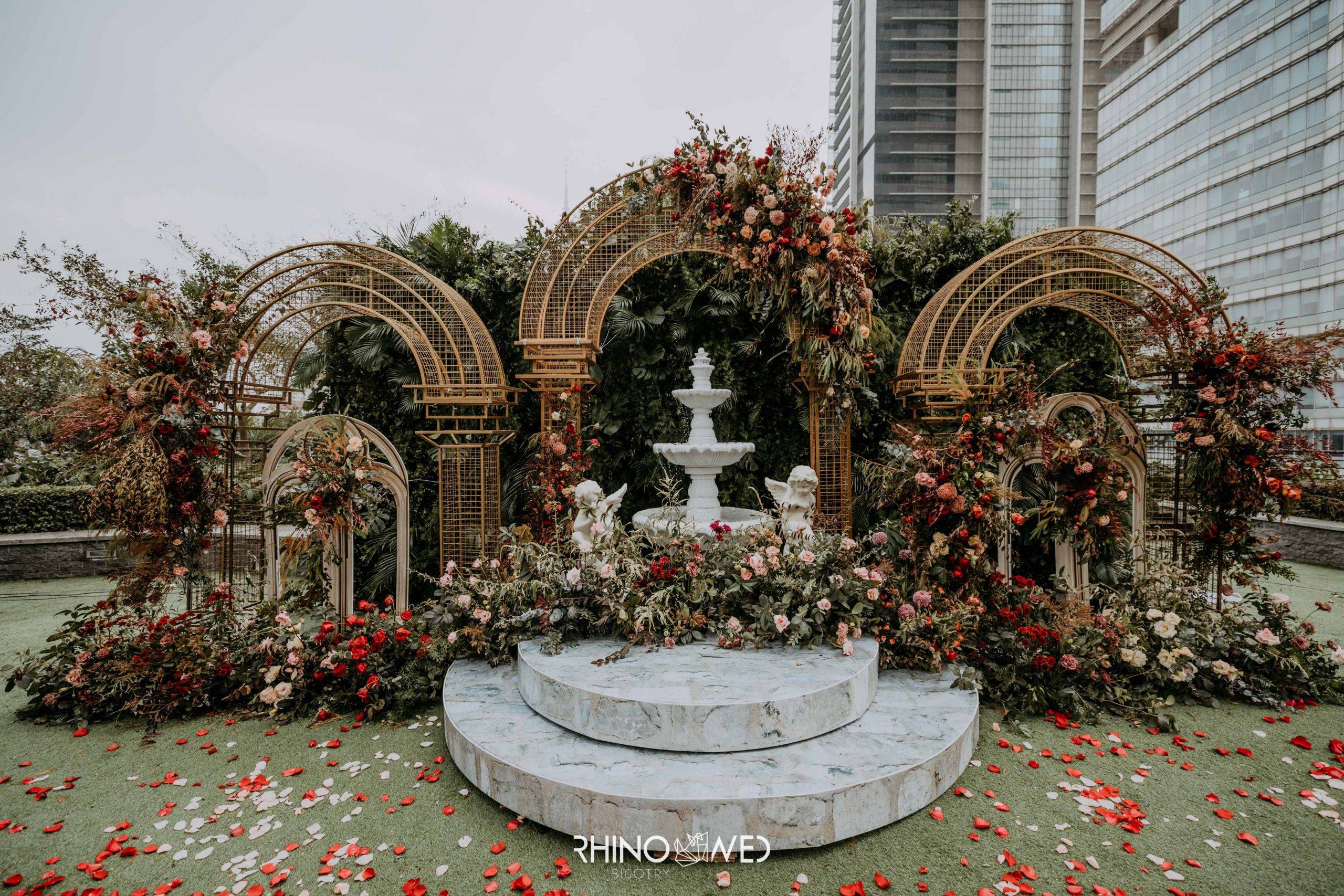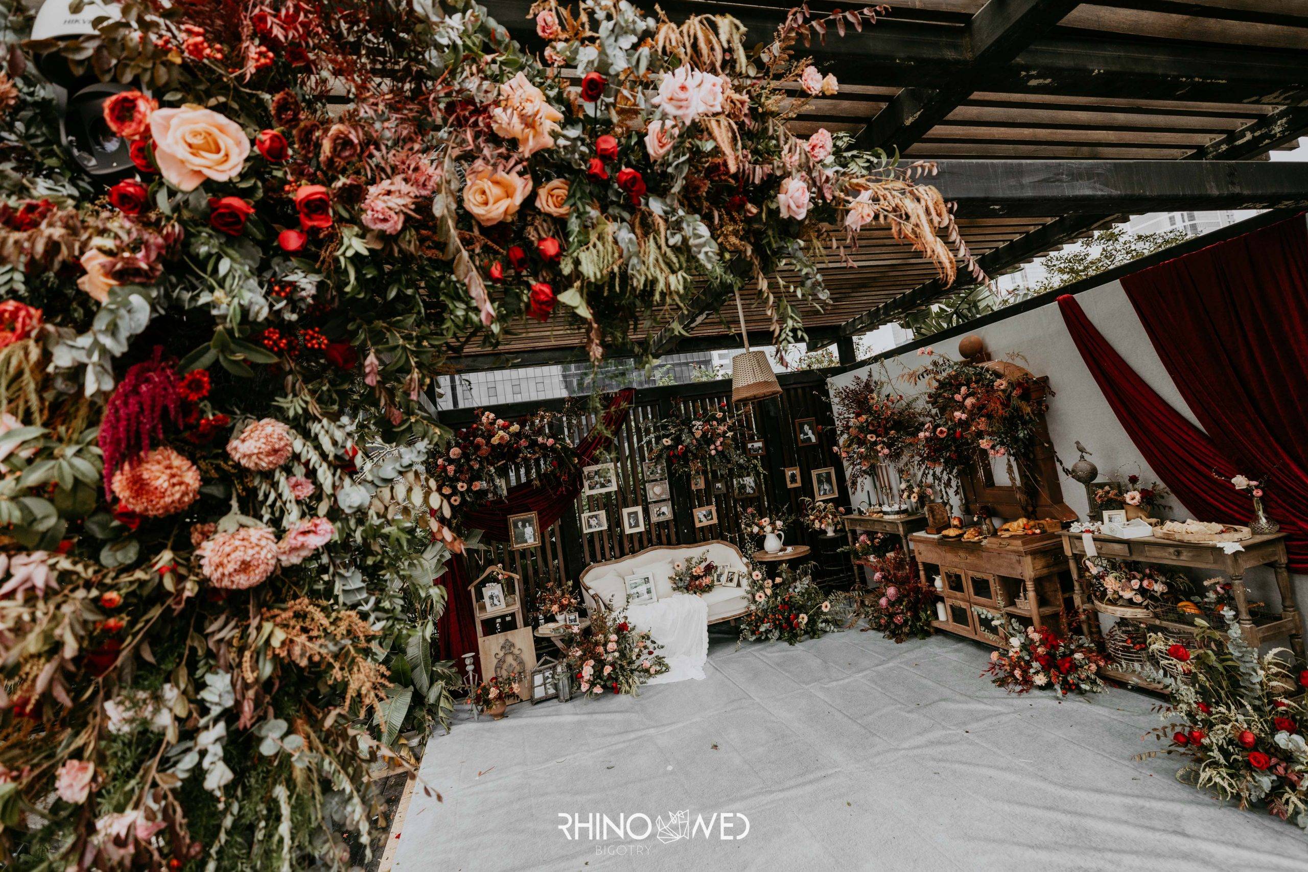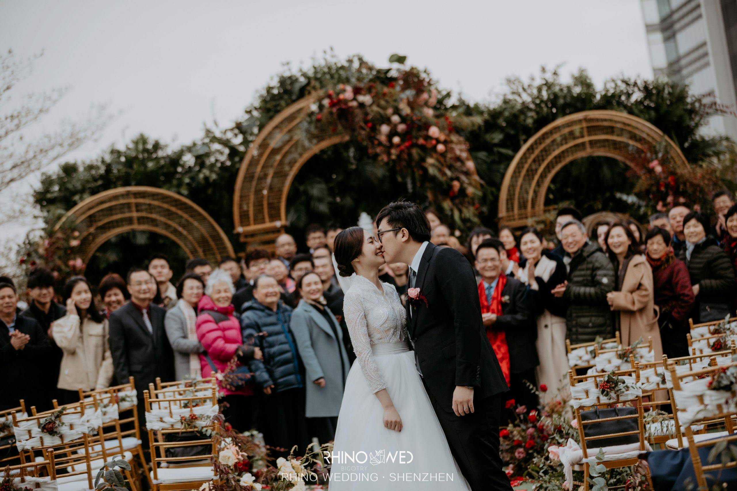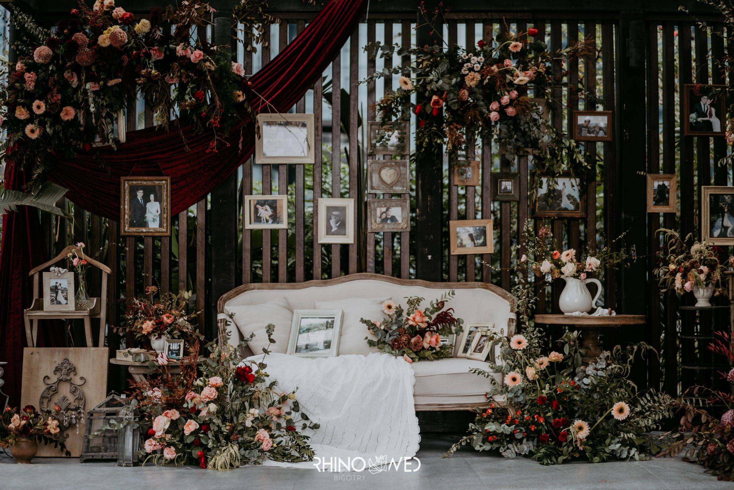 这场婚礼是新年第一天,1月1日,昨夜广州塔上亮起新年的庆祝灯光,这一天一早迎来了冰凉的天气,复古的酒红色生气勃勃的等待着新人宾客的到来;