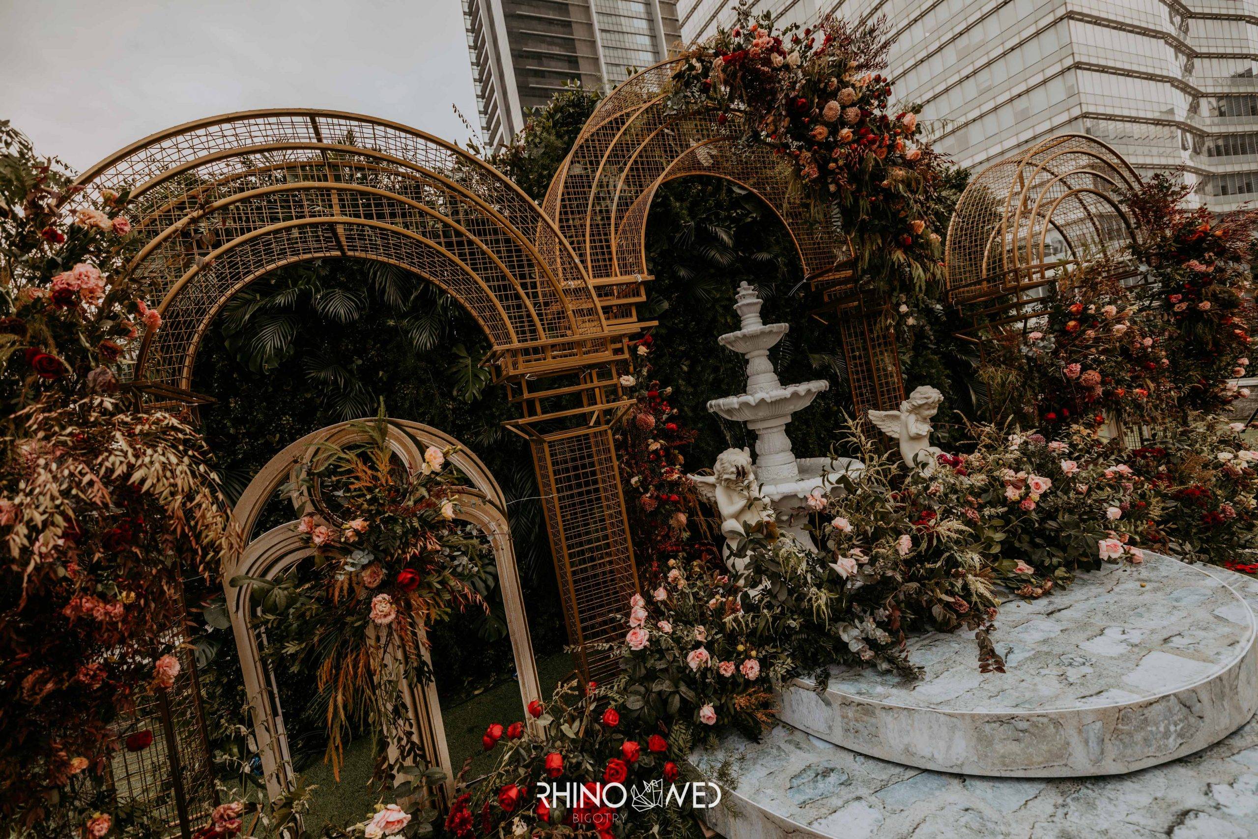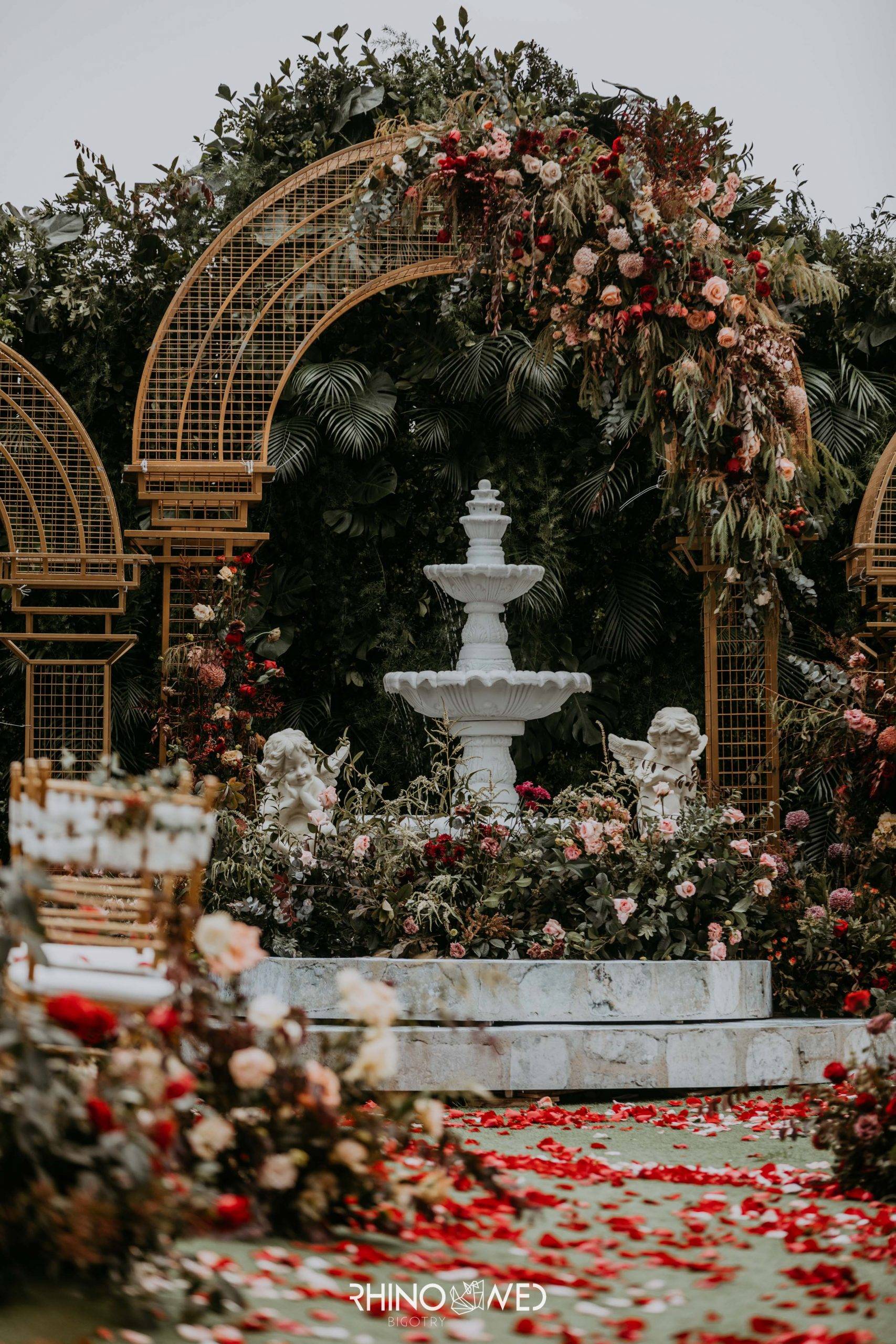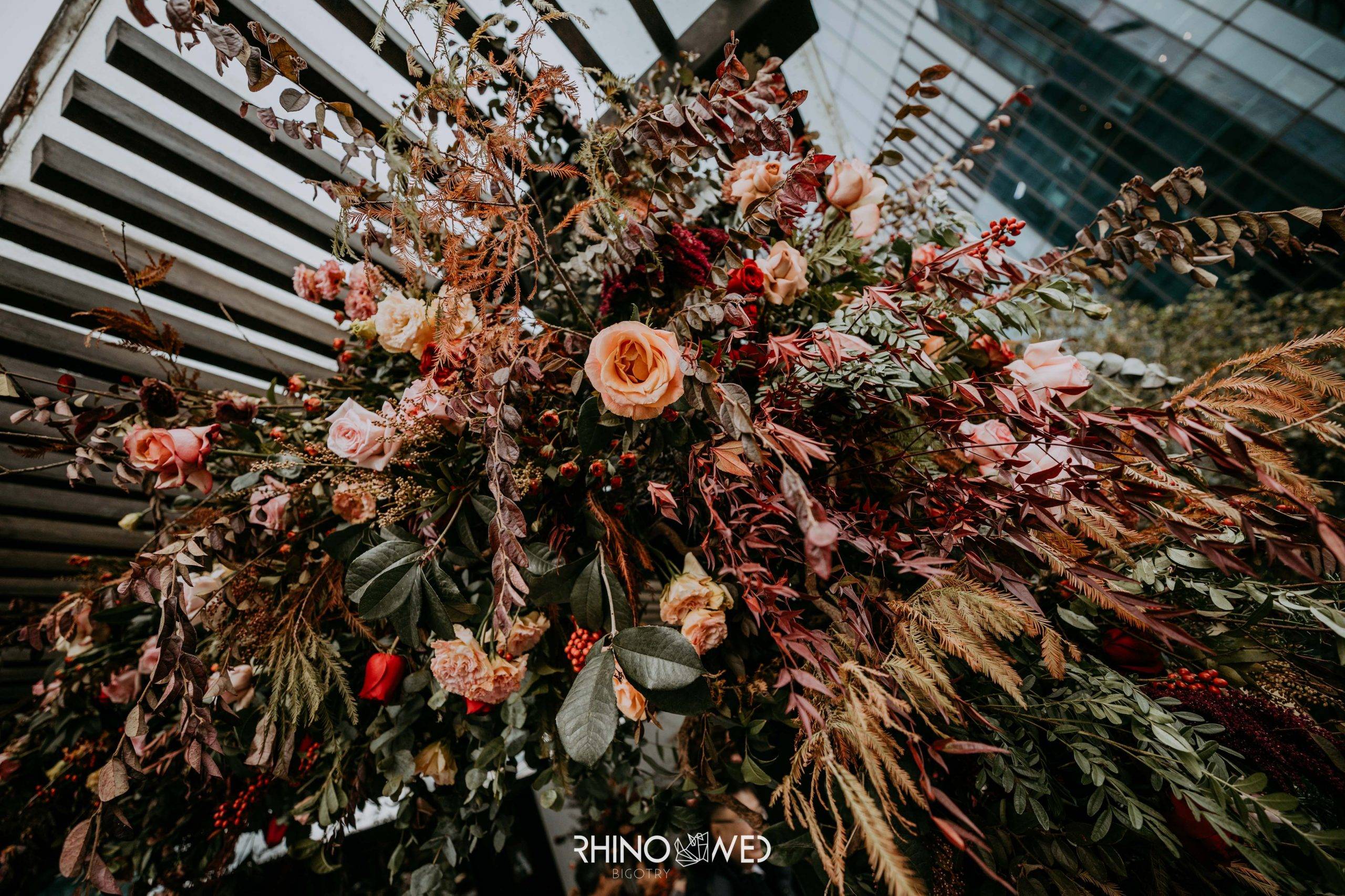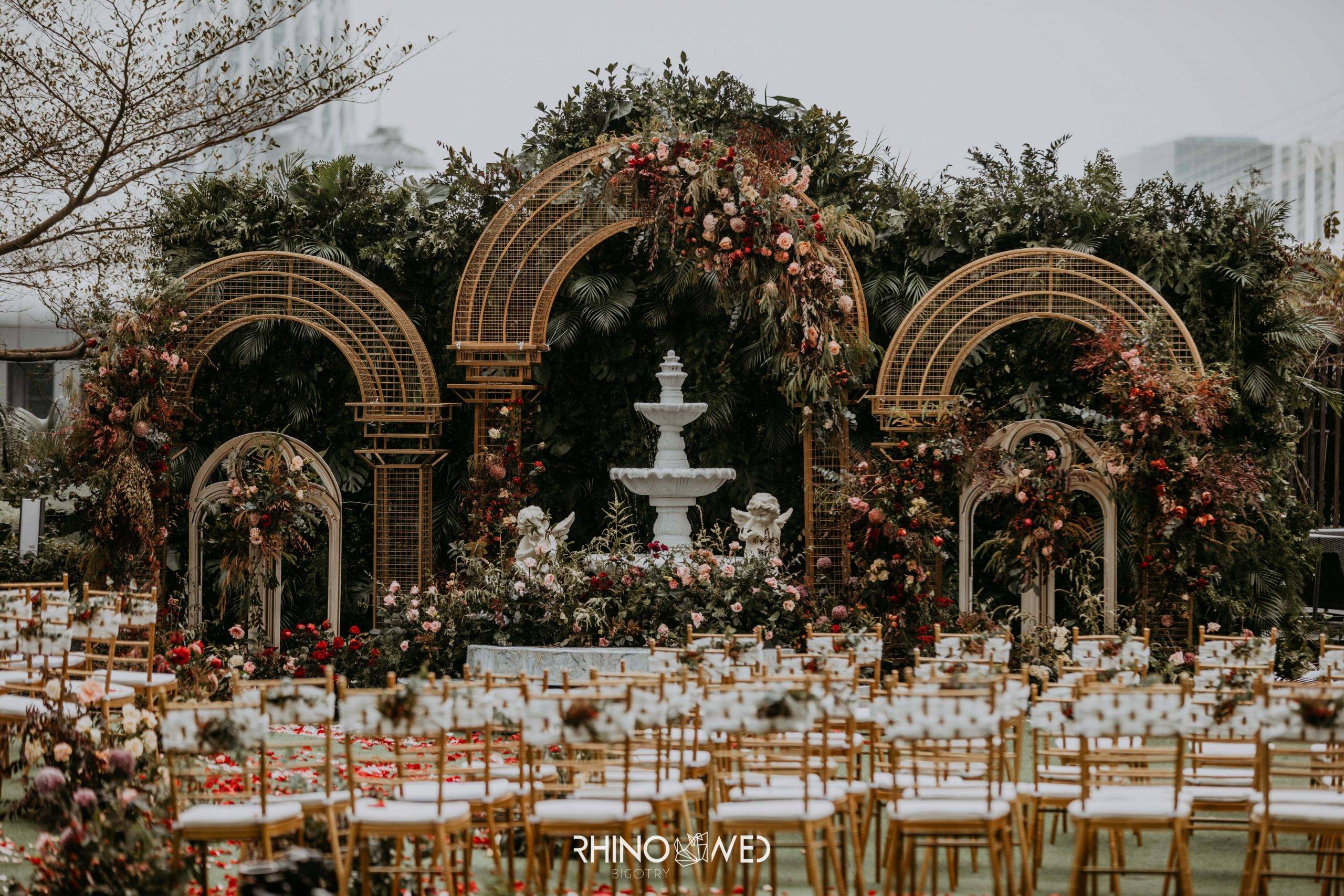 这场婚礼是新年第一天,1月1日,昨夜广州塔上亮起新年的庆祝灯光,这一天一早迎来了冰凉的天气,复古的酒红色生气勃勃的等待着新人宾客的到来;